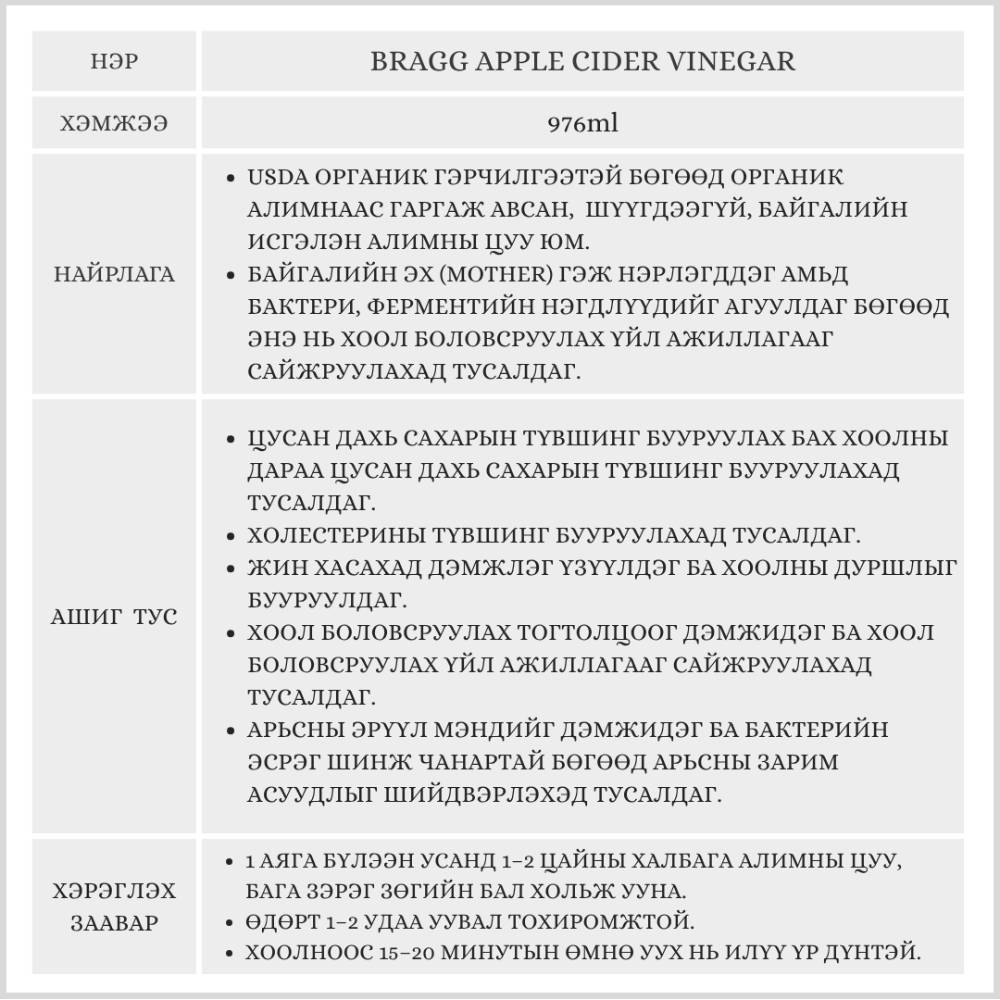 Алимны цуу нь органик алимнаас гаргаж авсан,байгалийн исгэлэн алимны цуу бөгөөд эрүүл мэндийн олон талын ашиг тустай бүтээгдэхүүн юм. *Цусан дахь сахарын түвшинг бууруулах *Холестерины түвшинг бууруулах *Жин хасахад дэмжлэг үзүүлэх *Хоол боловсруулах тогтолцоог дэмжих *Арьсны эрүүл мэндийг дэмжих