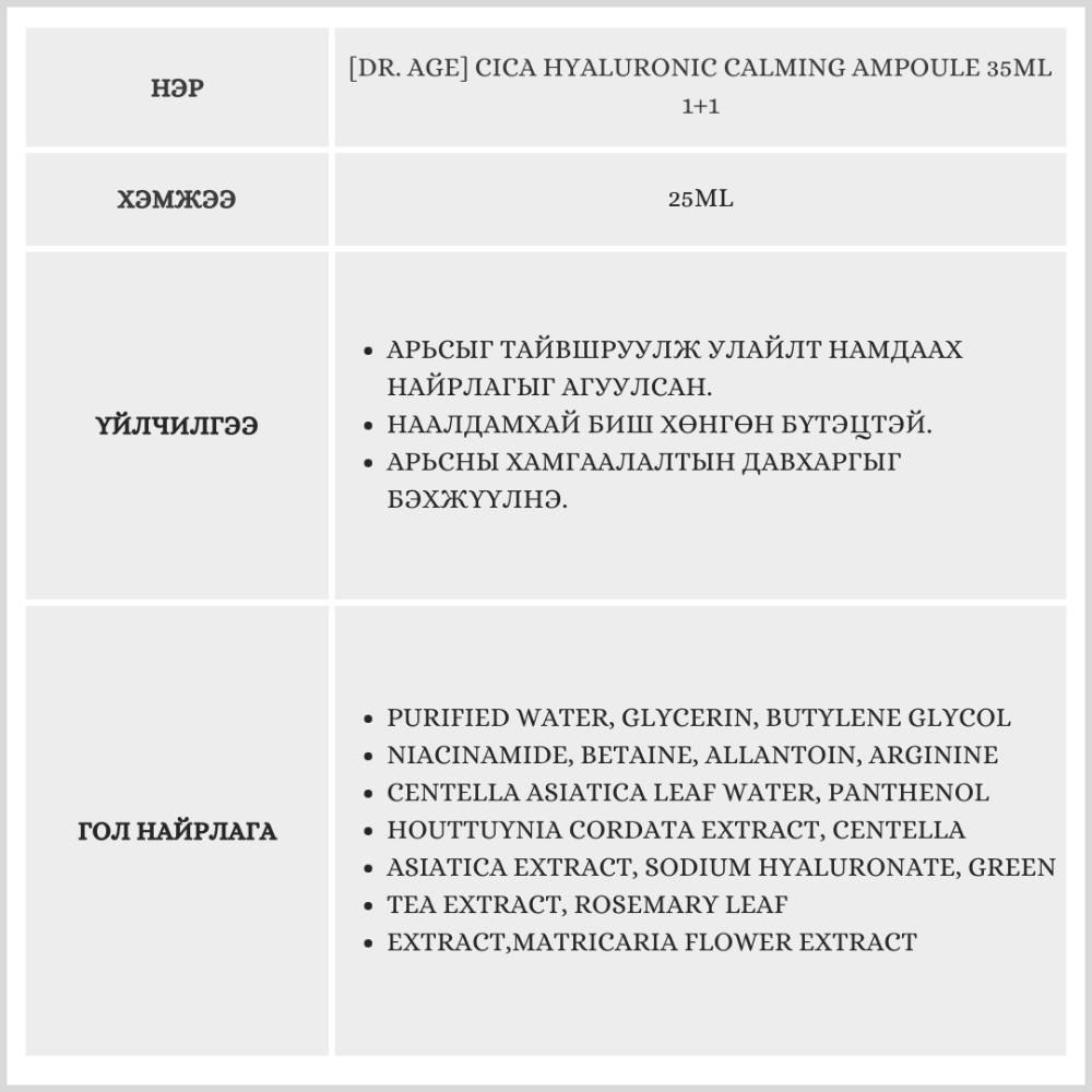 [Dr. Age] Cica Hyaluronic Calming Ampoule 35ml 1+1 (Extra 25ml Ampoule Gift) /Серум/