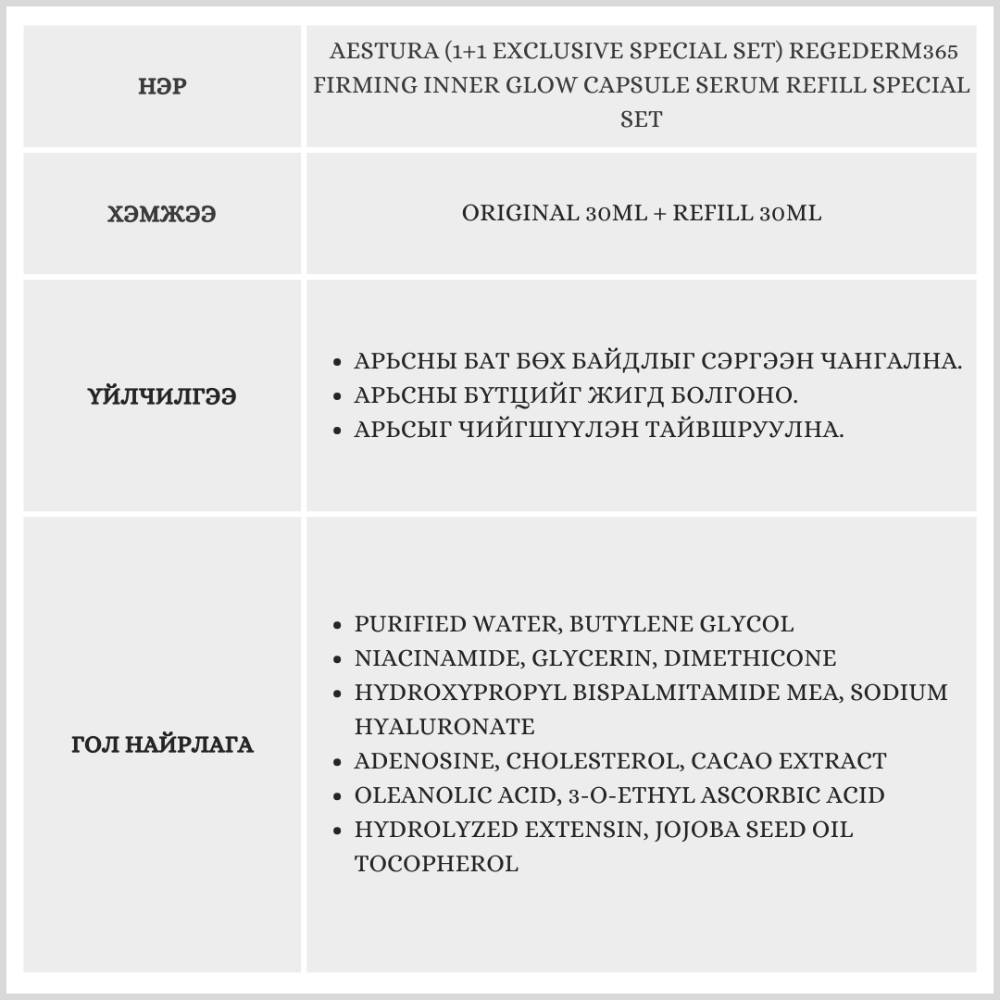 Хөгширсөн болон унжсан, уян хатан чанар нь алдагдсан хэт мэдрэмтгий арьсанд тохиромжтой. Арьсыг чийгшүүлэн чангалж тайвшруулна.