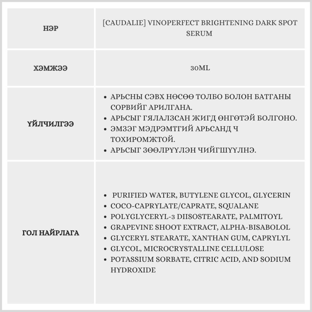 Энэхүү серум нь арьсны нөсөө толбо болон батганы сорвийг үр дүнтэй арилган арьсыг зөөлрүүлэн чийгшүүлнэ.