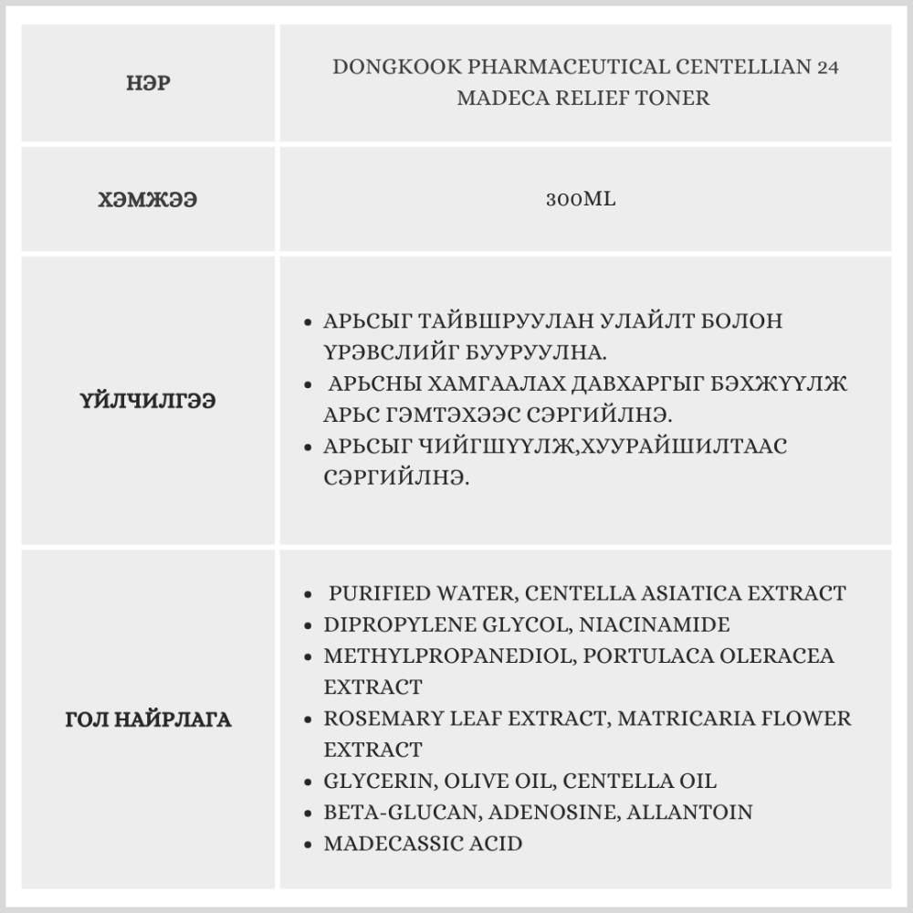Энэхүү тонер нь батгатай үрэвсэлтэй эмзэг арьсанд зориулсан. Арьсыг түргэн хугацаанд тайвшруулан арьсыг хамгаалан толигор болгоно.
