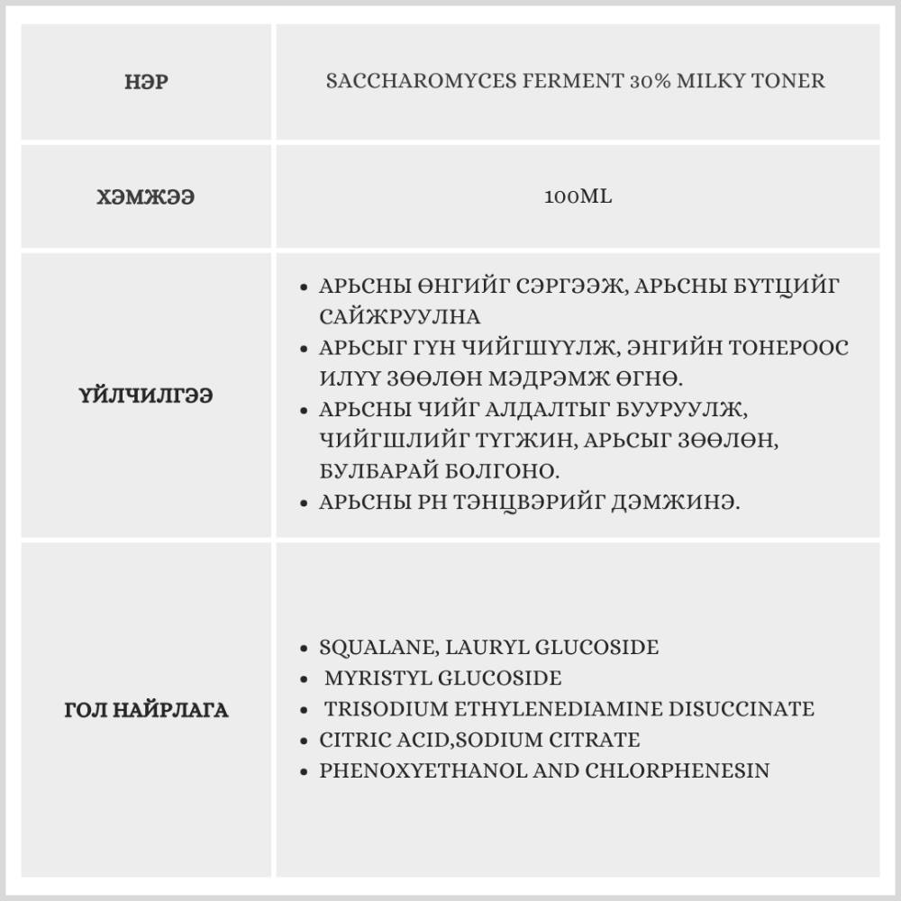 Энэхүү бүтээгдэхүүн нь хуурай болон бүх төрлийн арьсанд зориулсан. Арьсыг зөөлөн булбарай болгож чийгшүүлнэ.