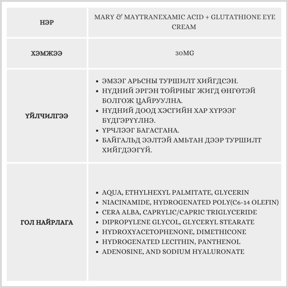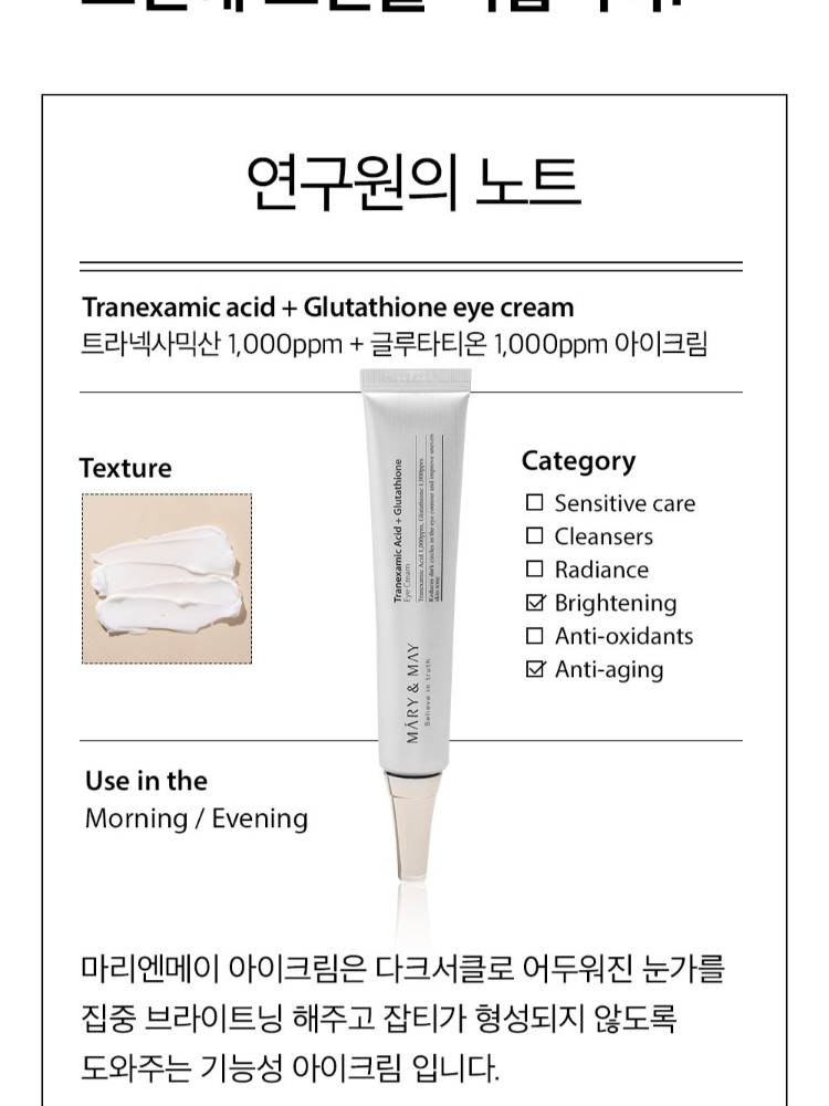 Mary & May Tranexamic Acid Glutathione Eye Cream, 30g /Зовхины тос/