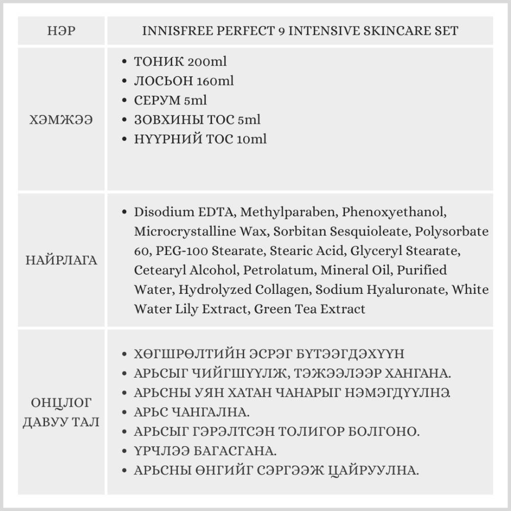 Innisfree Perfect 9 Intensive Skincare /Сет бүтээгдэхүүн/