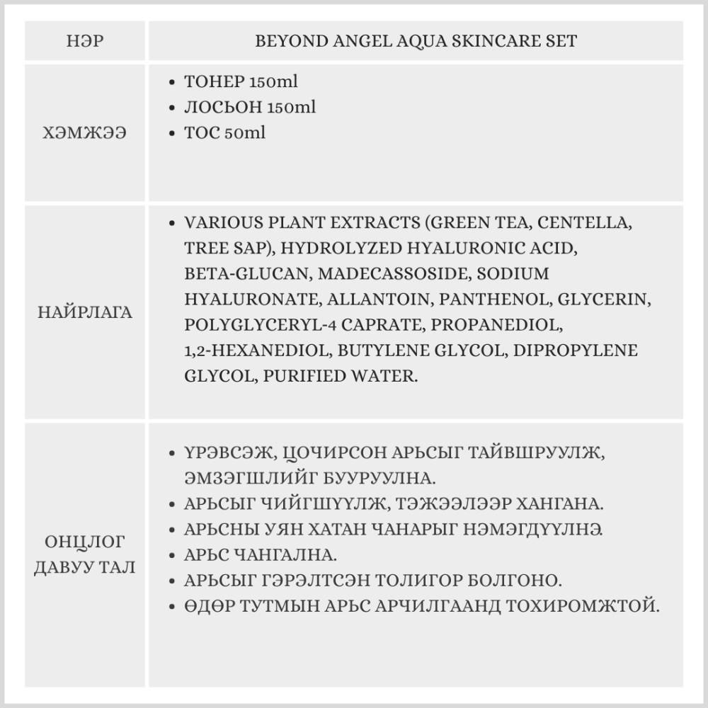Beyond Angel Aqua Skincare Set / Арьс арчилгааны сет/
