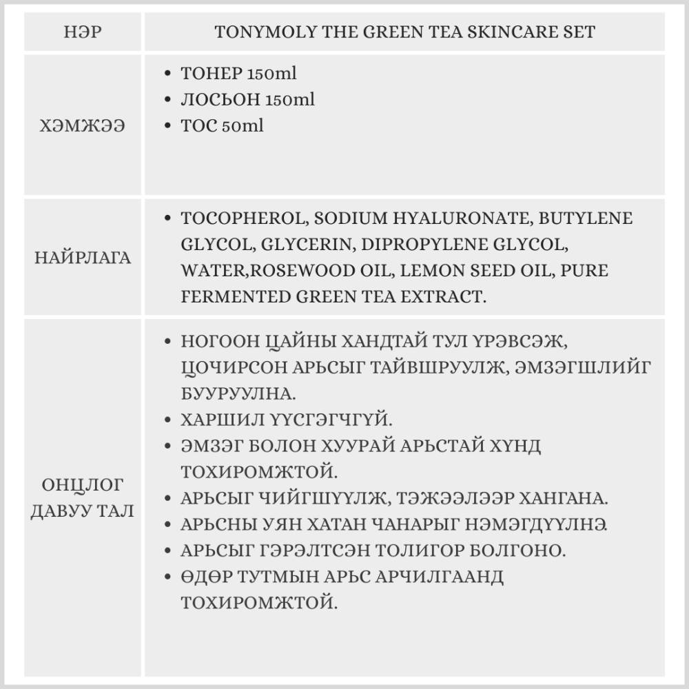 Ногоон цайны хандтай тул үрэвсэж, цочирсон арьсыг тайвшруулж, эмзэгшлийг бууруулна.