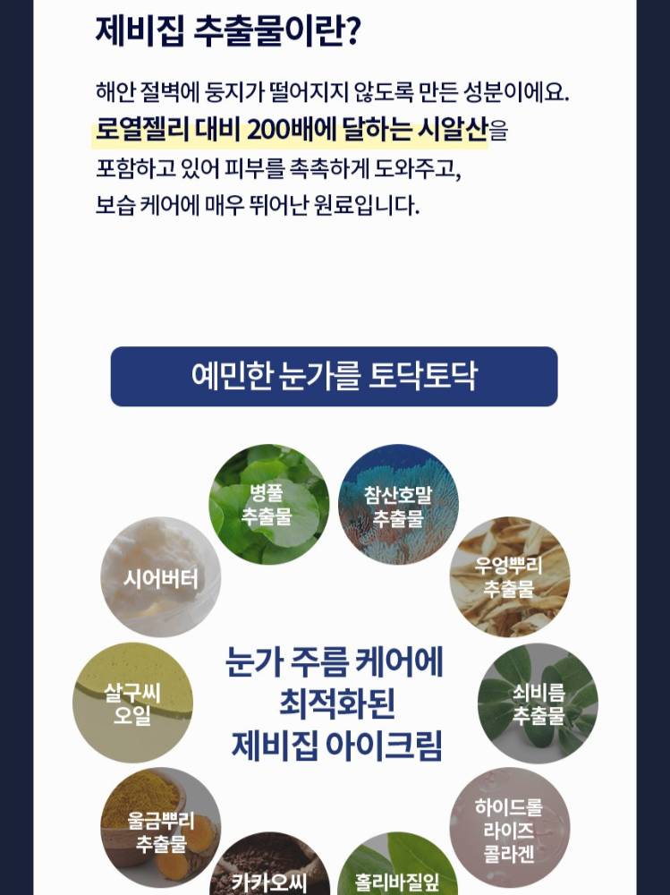 Арьсыг чангалж,уян хатан байдал болон нөхөн сэргэлтийг дэмжинэ.Нүдний эргэн тойрны арьсыг толигор болгоно.