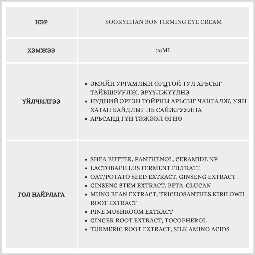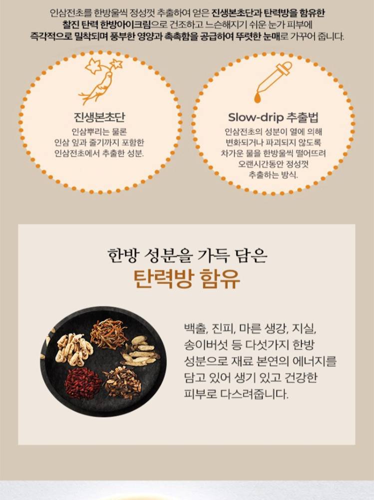 Эмийн ургамлын орцтой тул арьсыг тайвшруулж, эрүүлжүүлнэ.Нүдний эргэн тойрон болон арьсны үрчлээ, унжсан байдлыг багасгана.