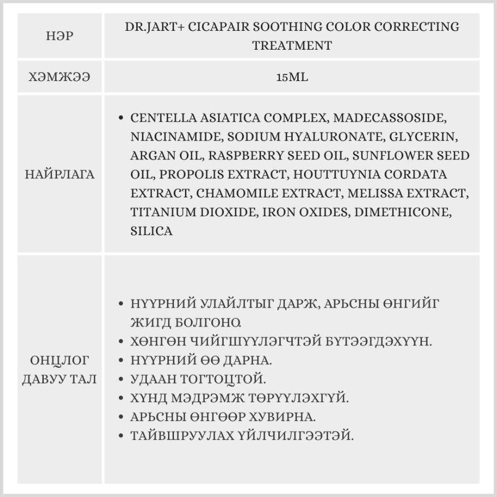 Dr.Jart Cicapair Soothing Color Correcting Treatment / Нүүрний тос /