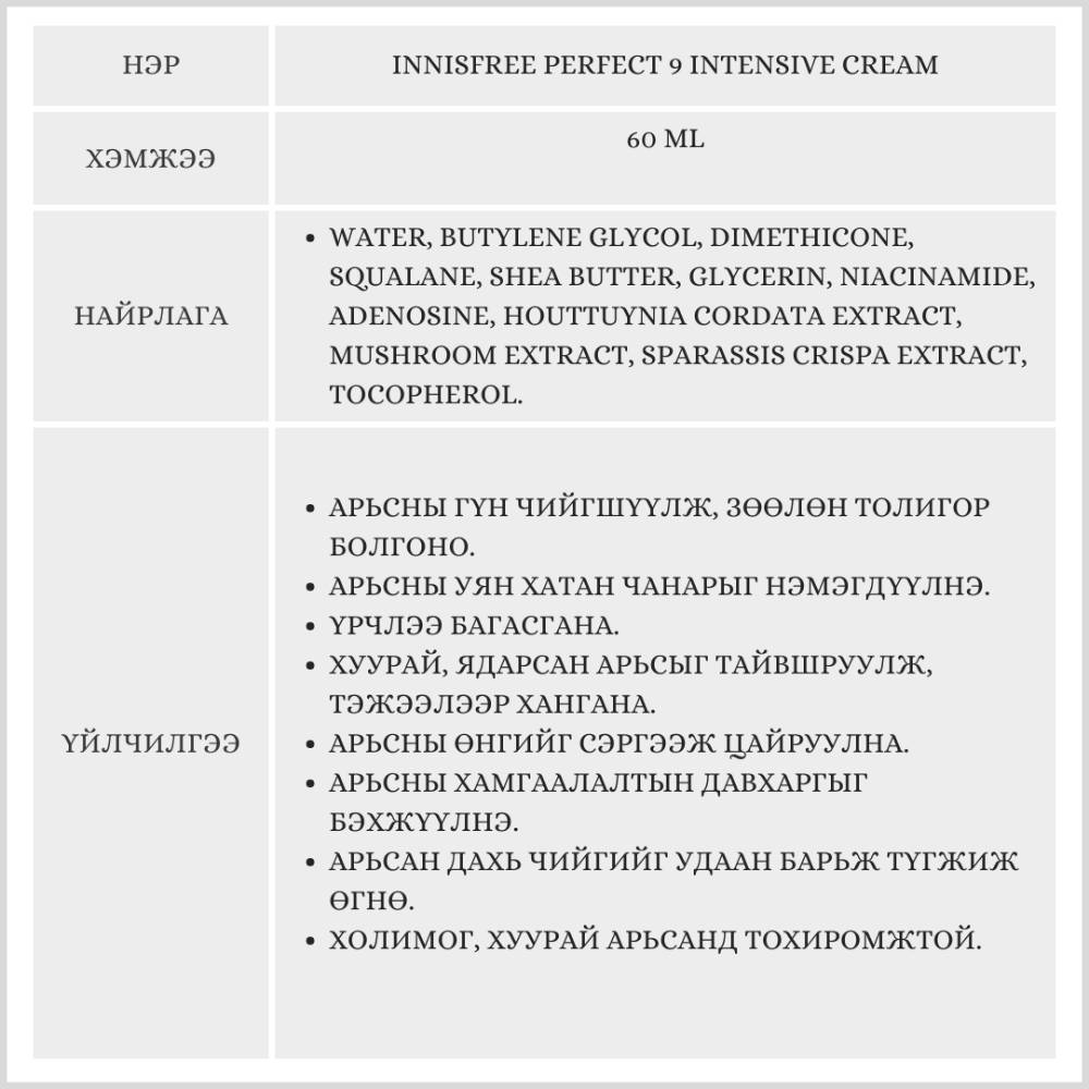 Innisfree Perfect 9 Intensive Cream, 60ml / Нүүрний тос/