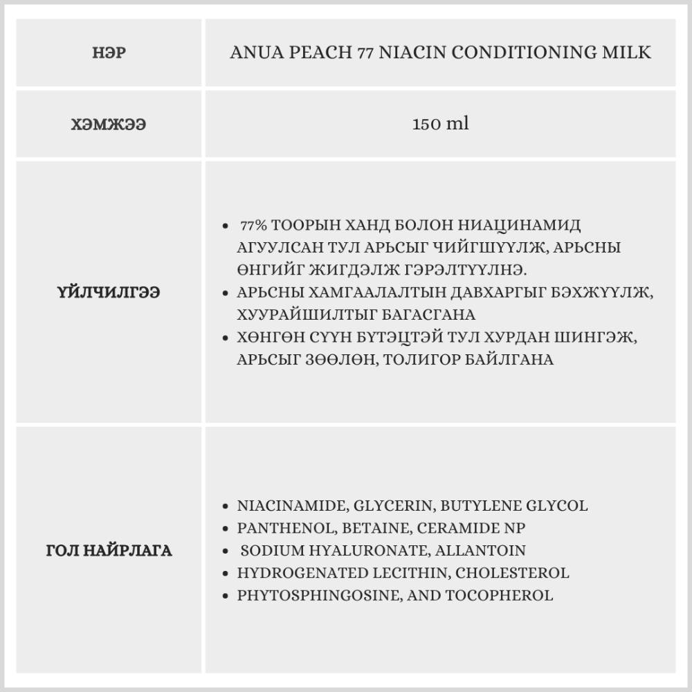 Арьсны хамгаалалтын давхаргыг дэмжиж, хуурайшилтыг багасгана.Хөнгөн сүүн бүтэцтэй тул арьсанд хурдан шингэж, арьсыг зөөлөн болгоно.