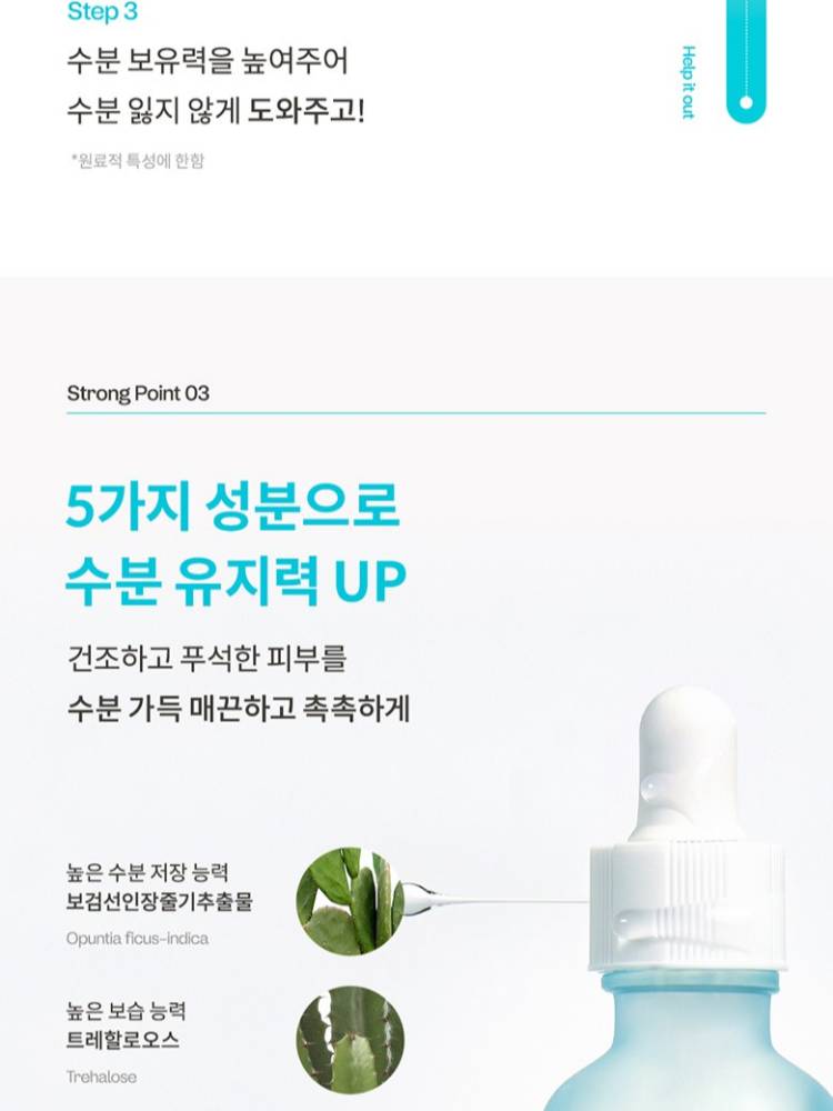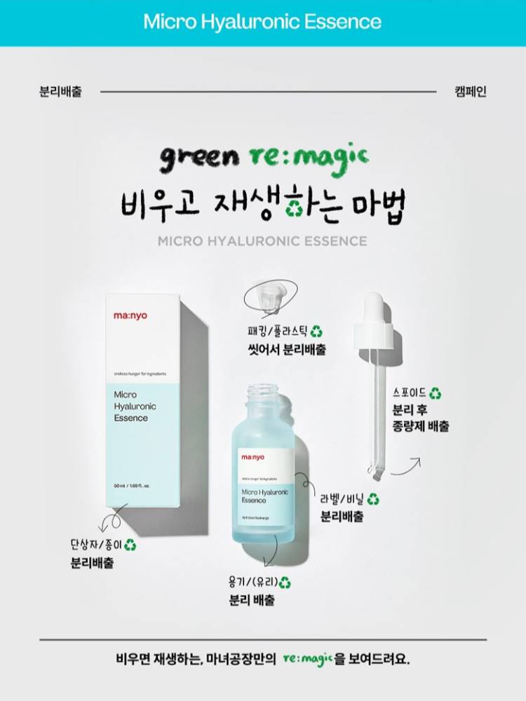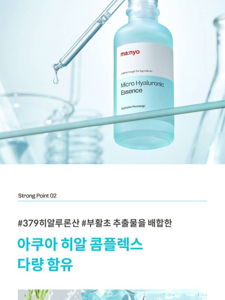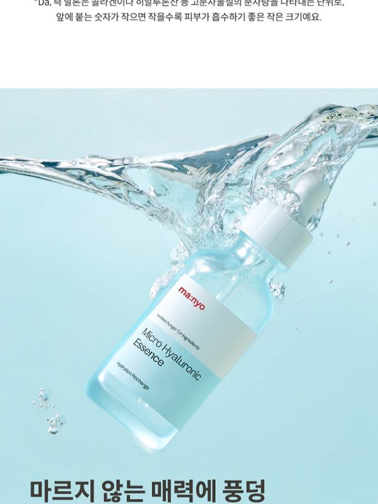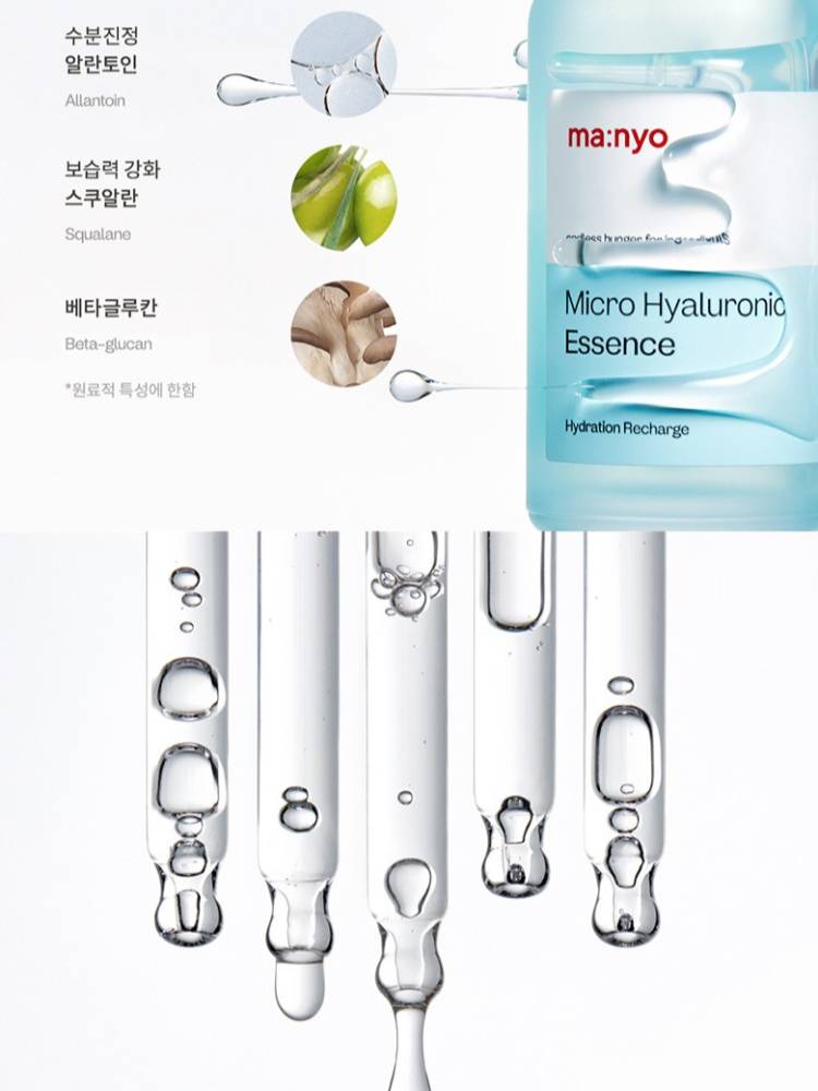 ma:nyo5 төрлийн чийгшүүлэгч найрлага болон олон төрлийн молекулт гиалоруны хүчил агуулсан, арьсны гадаргуу болон гүн давхаргыг супер чийгшүүлэх үйлчилгээтэй эссэнц. Арьсны хамгаалалтын давхаргыг бэхжүүлэн чийг алдагдлаас сэргийлж чийгийг удаан хугацаанд хадгална.