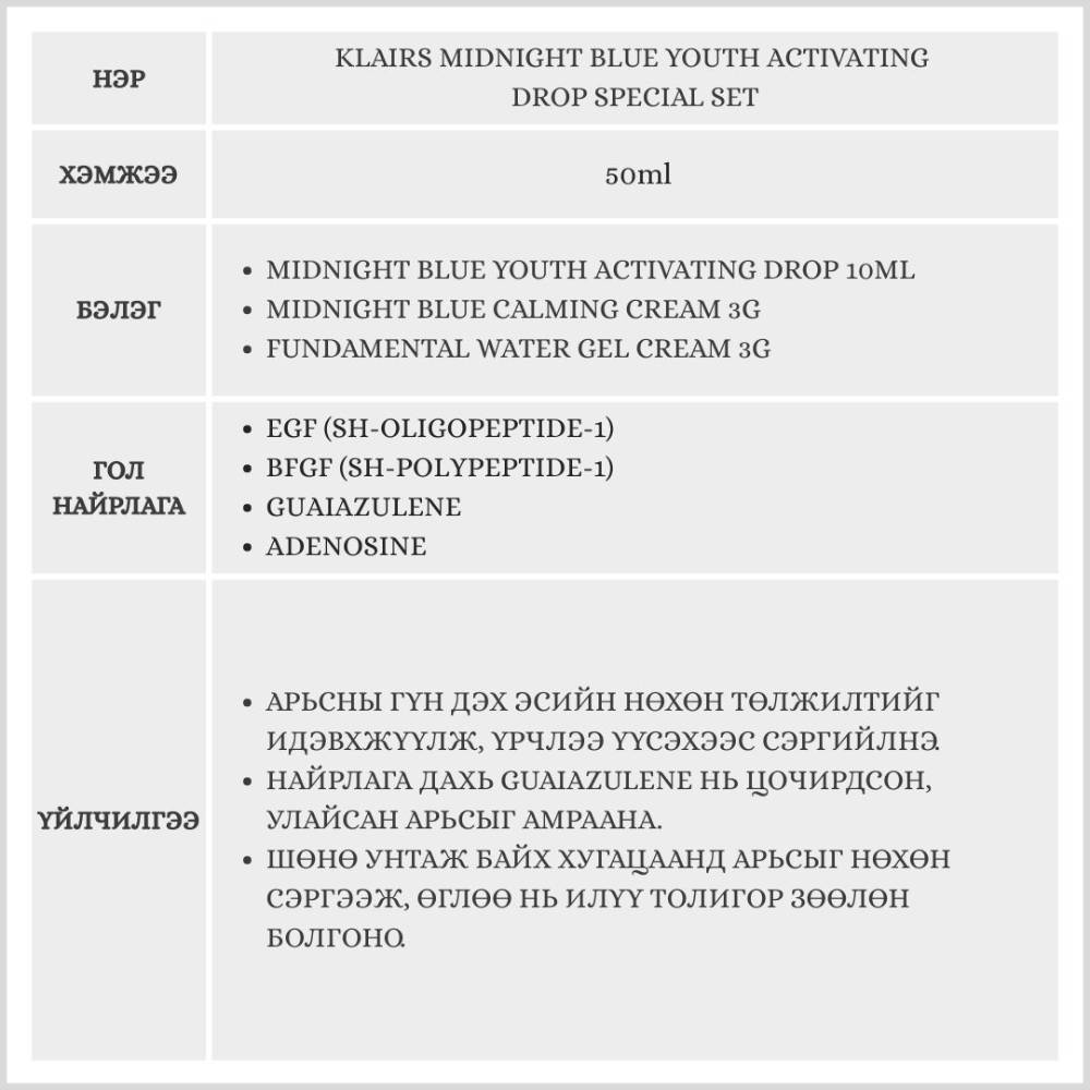 Энэхүү шөнийн ампуль нь арьсыг залуужуулах, үрчлээний эсрэг эрчимтэй үйлчилгээ үзүүлнэ. Арьсны нөхөн төлжилтийг дэмжих байгалийн найрлага нь арьсыг тайвшруулж, эрүүлжүүлэх зорилготой. Бэлгэнд
