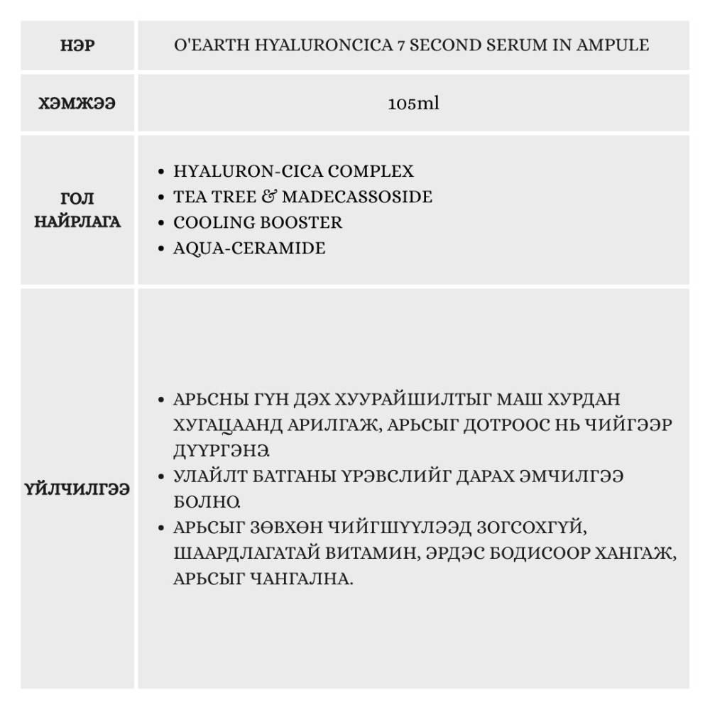 Арьсны гүн дэх асуудлыг хамгийн хурдан хугацаанд шийдэх зорилготой бүтээгдэхүүн бөгөөд энэхүү "7 секундын серум" нь түрхсэн даруйд арьсанд нэвчиж, чийгшил болон тайвшруулах үйлчилгээг нэгэн зэрэг үзүүлнэ.