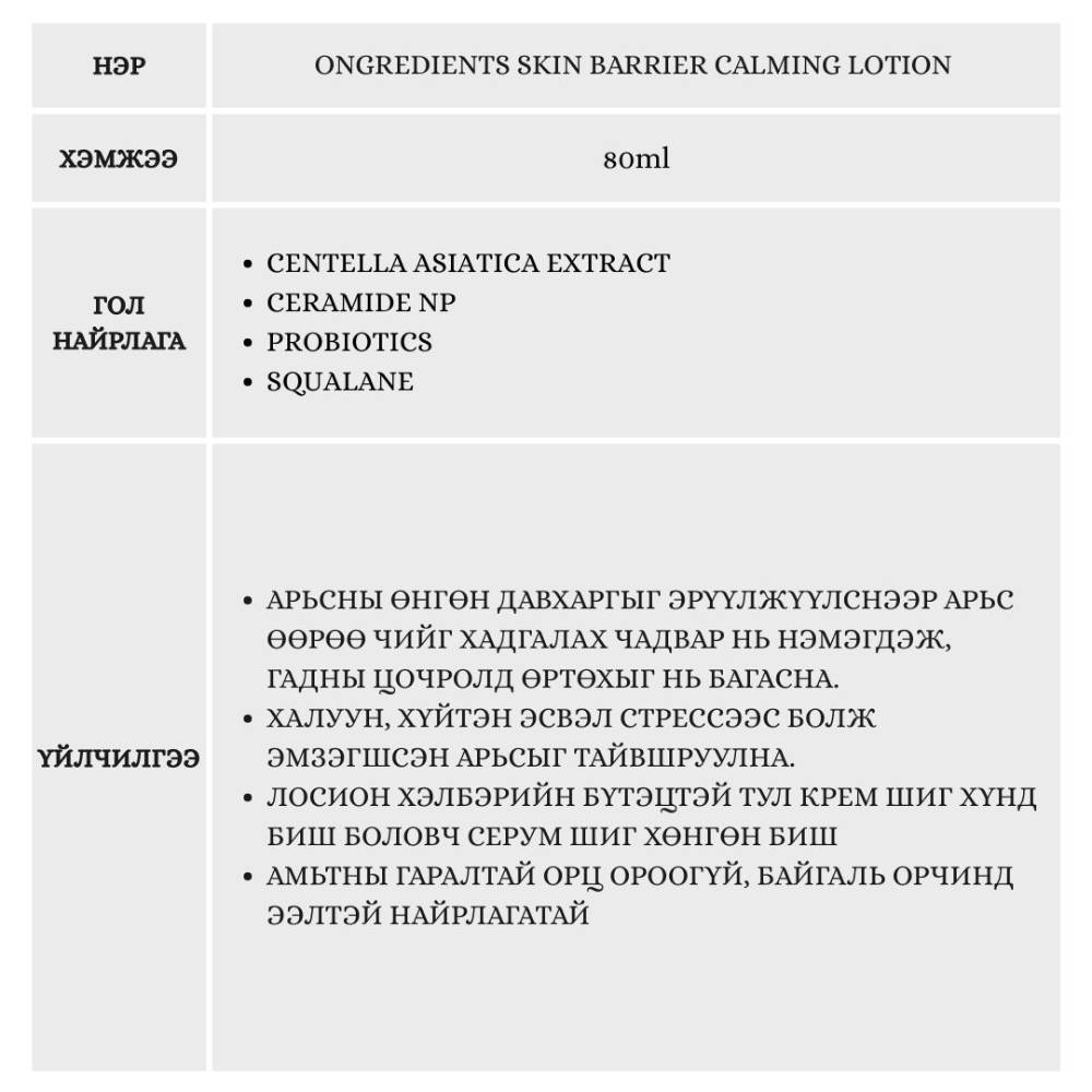 Арьсны байгалийн хамгаалалтын давхарга гэмтсэний улмаас үүсдэг мэдрэмтгий байдал, хуурайшилт болон улайлтыг эмчилнэ. 100% Веган найрлагатай бөгөөд арьсанд маш зөөлөн бүтэцтэй тул бүх төрлийн арьсанд, тэр дундаа маш эмзэг арьсанд тохиромжтой.