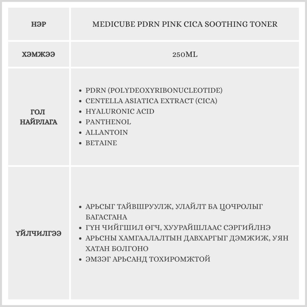 Medicube PDRN Pink Cica Soothing Toner, 250ml/Тонер/OY