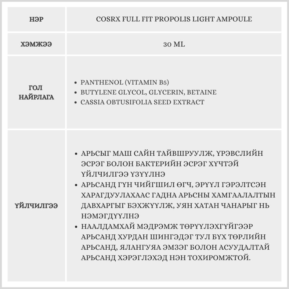Энэхүү бүтээгдэхүүн нь зөгийн балны найрлагатай тул арьсыг маш сайн тайвшруулж, гүн чийгшүүлэхийн зэрэгцээ үрэвслийн эсрэг үйлчилгээтэй. Мөн арьсыг гэрэлтсэн, толигор болгож өгнө.