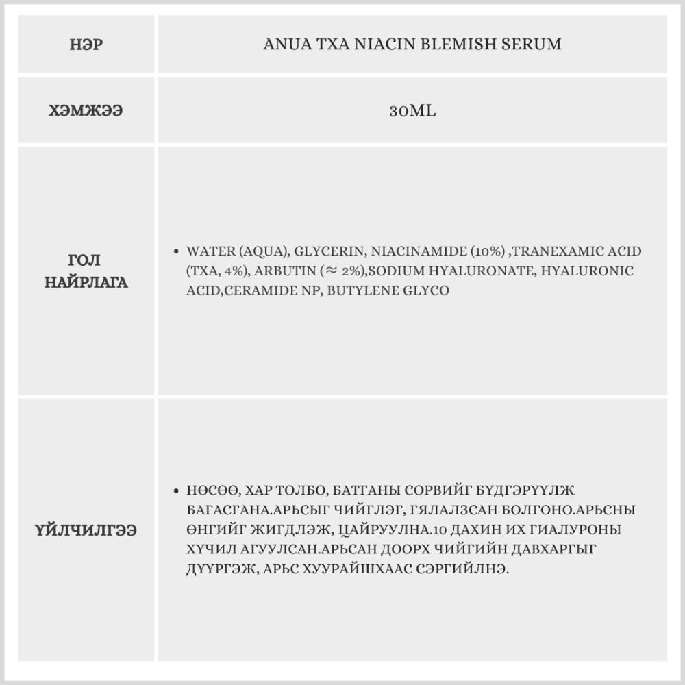 Anua TXA Niacin Blemish Serum, 30ml/Серум/OY