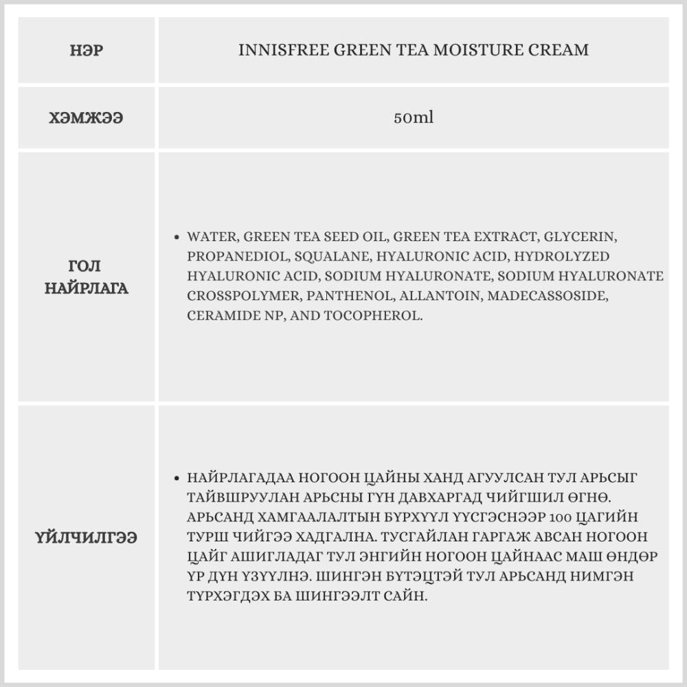 Энэхүү бүтээгдэхүүн нь арьсыг гүн чийгшүүлж, чийгийг удаан хугацаанд хадгална. Мөн арьсны тослогийг тэнцвэржүүлж, арьсан дахь усны хэмжээг нэмэгдүүлснээр арьсыг эрүүл, толигор болгоно.