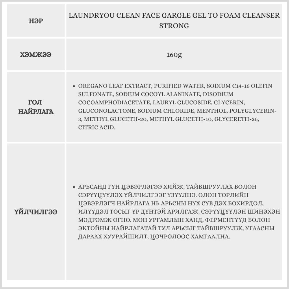 Гелэн бүтэцтэй, арьсны гүн дэх бохирдол болон илүүдэл тосыг цэвэрлэх үйлчилгээтэй нүүрний хөөсөн цэвэрлэгч юм. Хурдан тослогтдог арьсанд нэн тохиромжтой.
