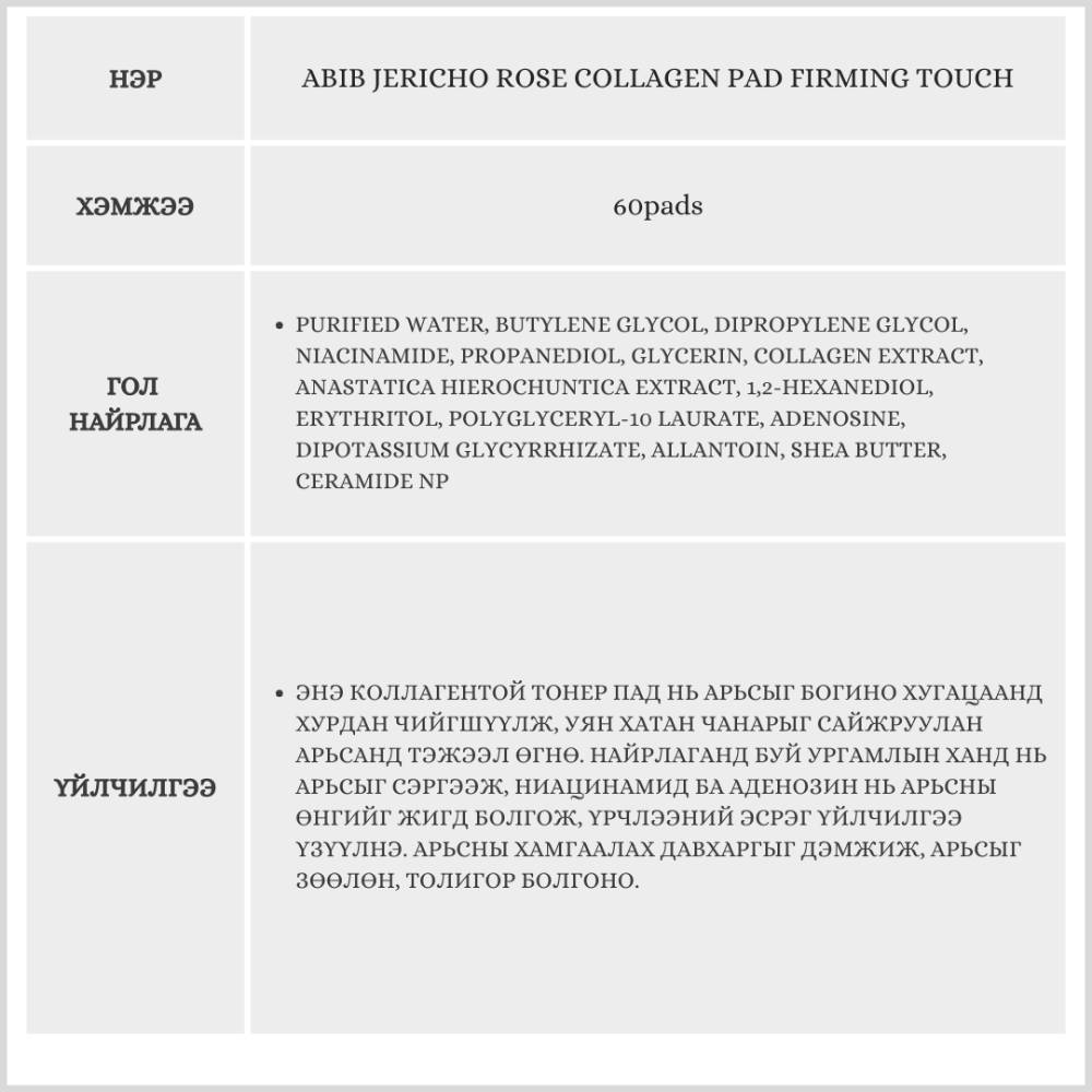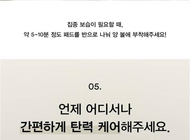 Энэхүү пад нь 10 минутын дотор арьсыг чийгшүүлж, уян хатан болгох үйлчилгээтэй ба ургамлын ханд болон коллагены найрлага арьсны хамгаалах давхаргыг дэмжинэ. Арьс ядарч, хуурайшсан үед хурдан сэргээх, эсвэл арчилгааны эхний алхам болгон хэрэглэхэд тохиромжтой.