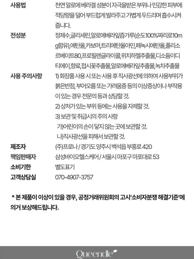Алое вера гел нь богино хугацаанд арьсыг тайвшруулж, гүн чийгшүүлэх үйлчилгээ үзүүлнэ. Нарны туяанд түлэгдсэн, улайж эмзэгшсэн арьсыг хурдан тайвшруулна. Нүүр, бие, үс зэрэг олон зориулалтаар хэрэглэж болох ба чийглэг, сэрүүн мэдрэмж төрүүлнэ.