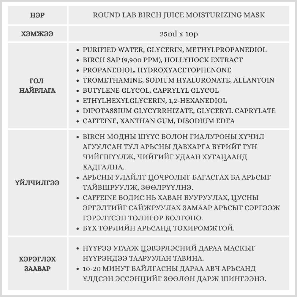 Хус модны шүүс болон гиалуроны хүчил агуулсан, арьсыг гүн чийгшүүлэх үйлчилгээтэй нүүрний маск. 100% цэвэр хөвөн даавуугаар хийгдсэн бөгөөд арьсны ус, чийгийн тэнцвэрийг тогтвортой хадгална.