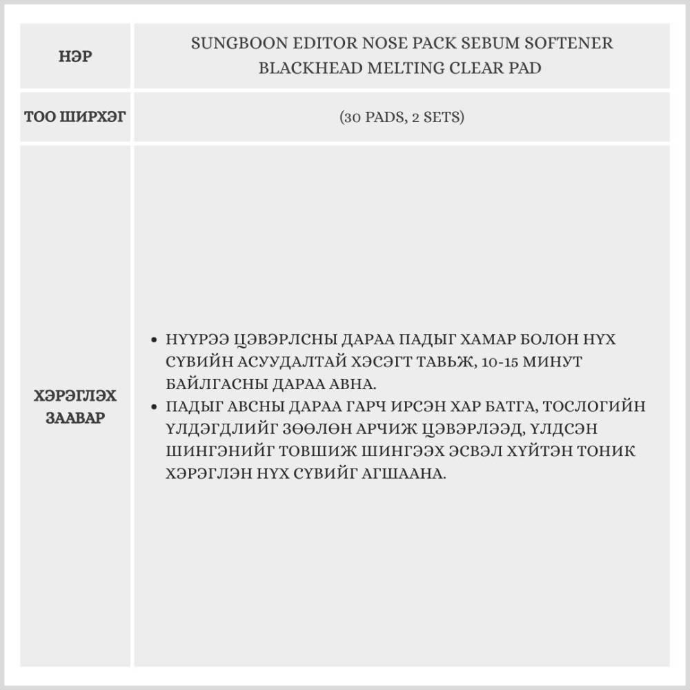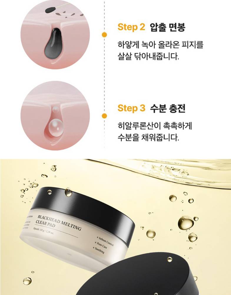 Sebum Melting Complex агуулсан бэлэн пад бөгөөд хар батга, арьсны бохирдол, илүүдэл тослогийг зөөлөн уусган нүх сүвийг цэвэрлэж, арьсыг жигд, гөлгөр болгоно.