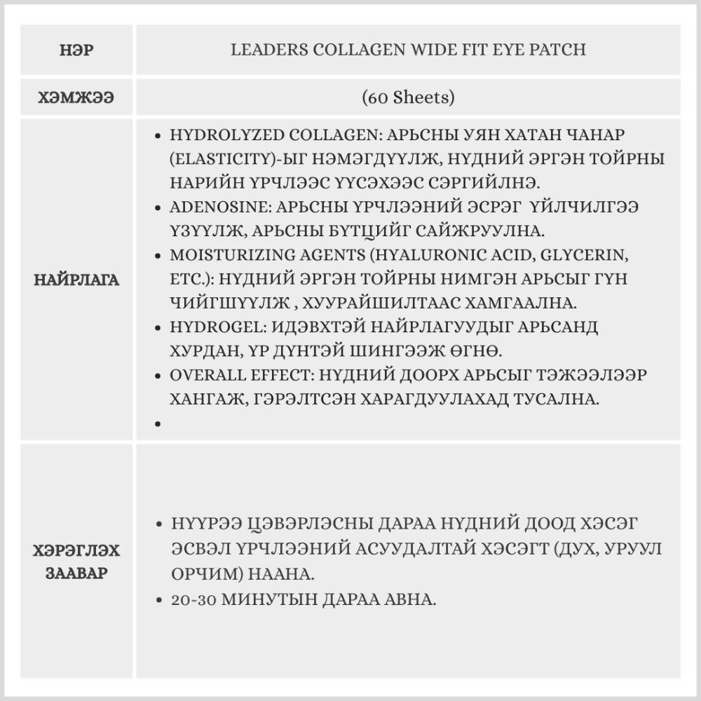 Арьсны уян хатан чанарыг нэмэгдүүлж, гүн чийгшүүлэх үйлчилгээтэй нүдний маск. Нүдний эргэн тойрны унжсан арьсыг чангалж, гэрэлтсэн толигор болгоно.