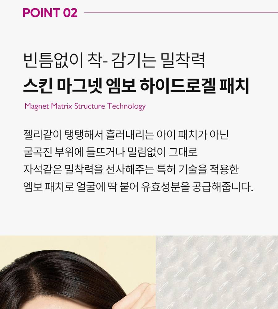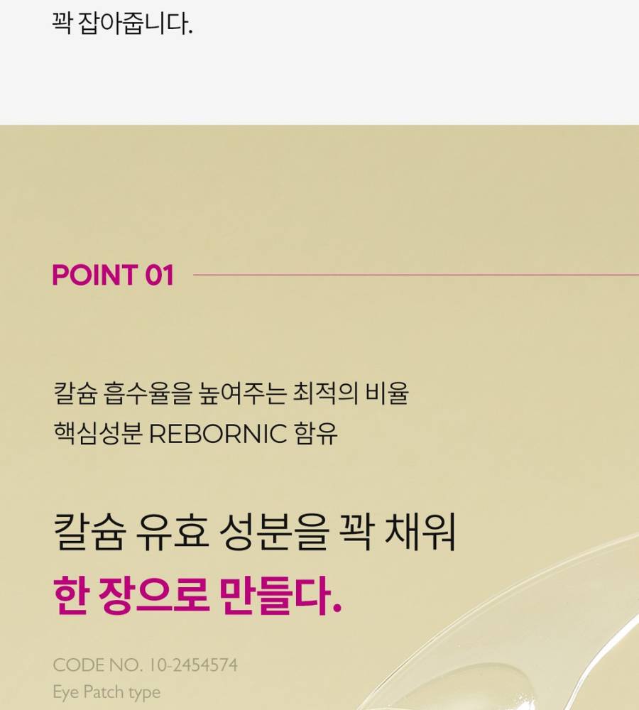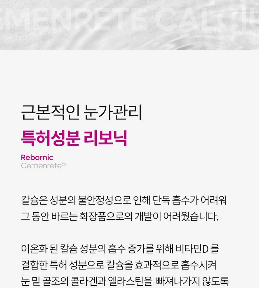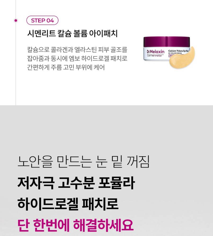 Кальци болон cemenrete найрлагатай гидрогелэн бүтэцтэй нүдний маск. Нүдний эргэн тойрны арьсны уян хатан чанарыг нэмэгдүүлж, бүтцийг бэхжүүлэн арьсыг өргөж чангалах үйлчилгээтэй.