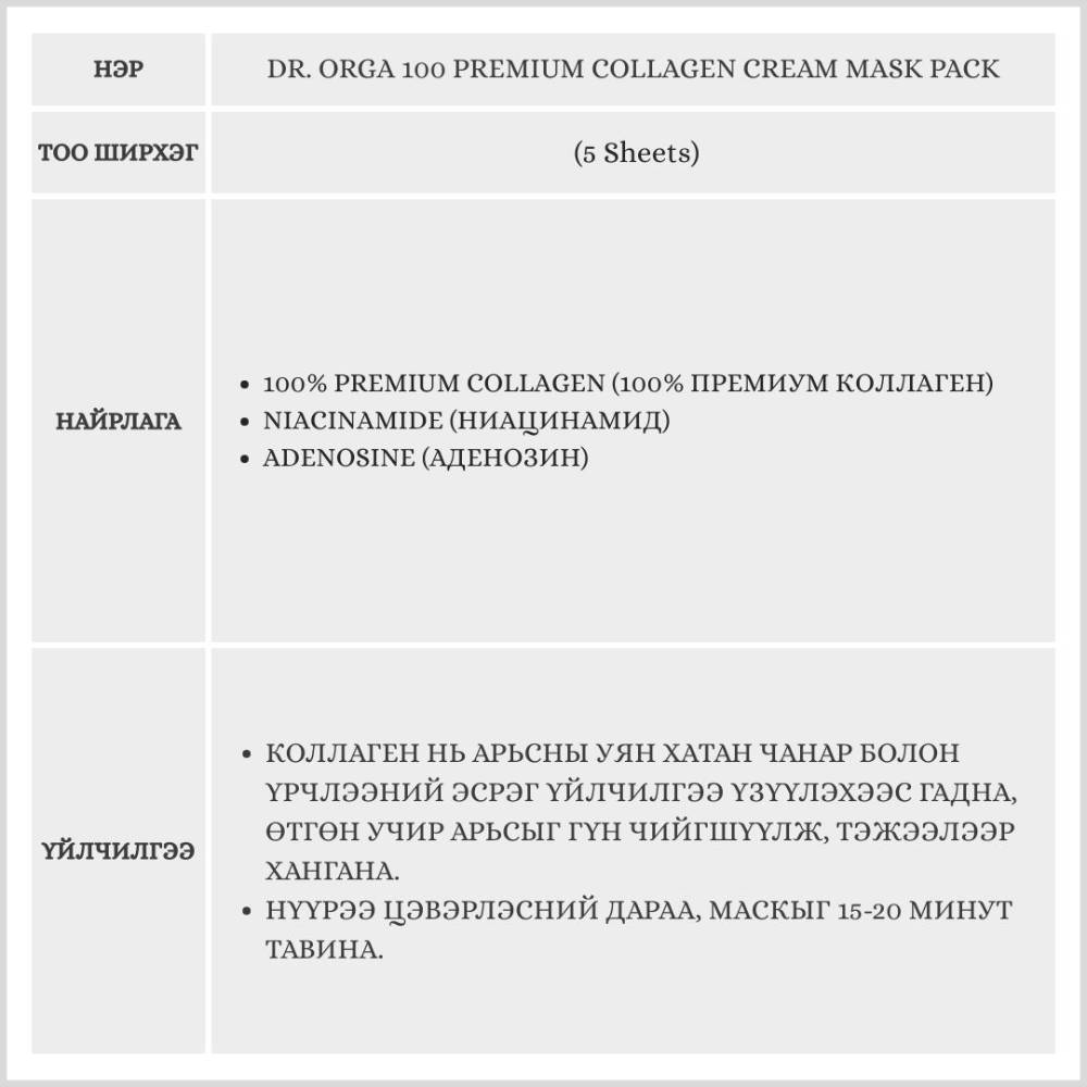 100% цэвэр коллаген агуулсан маск бөгөөд арьсны уян хатан чанар/Elasticity/-ыг нэмэгдүүлэх ба арьсыг гүн чийгшүүлж, тэжээлээр хангана.