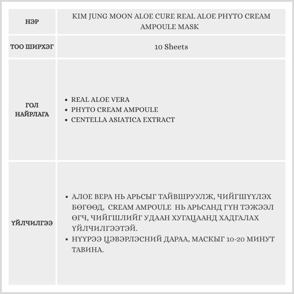 Алое болон Green ampoule-ийг хослуулсан энэхүү маск нь арьсыг тайвшруулж, гүн чийгшүүлэх ба арьсанд тэжээл өгч, хамгаалалтын давхаргыг бэхжүүлэхэд тусална.