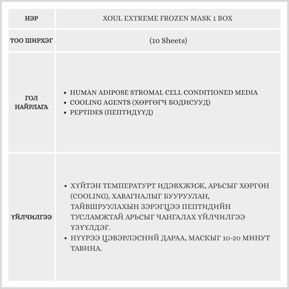Human Adipose Stromal Cell Conditioned Media болон хүйтэн температурт идэвхжих хөргөх найрлагуудаар баяжуулсан, арьсыг тайвшруулж, сэрүүцүүлэн, чангалах үйлчилгээтэй маск юм.Нарны нөлөөнд цочирч, хавагнасан арьсыг гүн чийгшүүлж, уян хатан чанарыг сайжруулан илүү толигор зөөлөн харагдуулна.