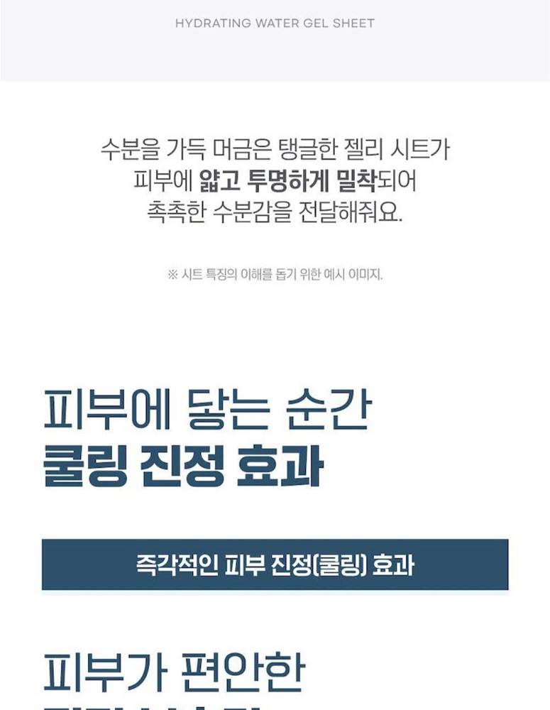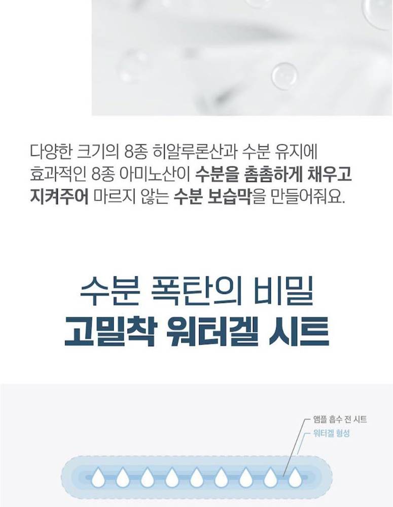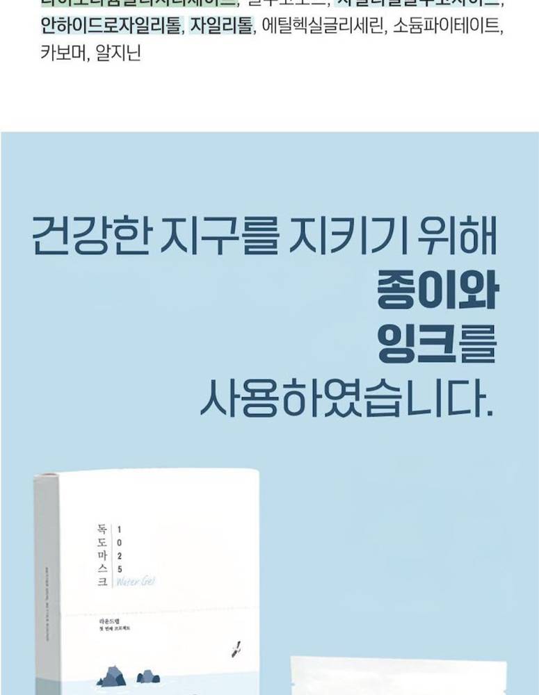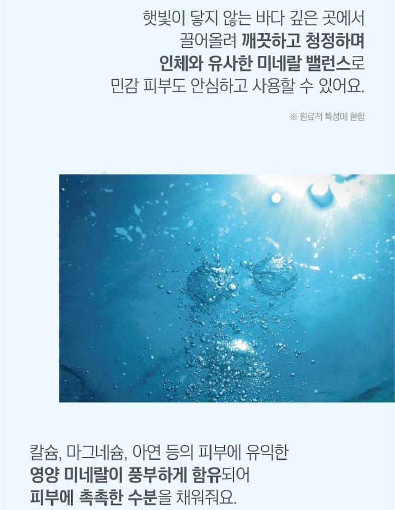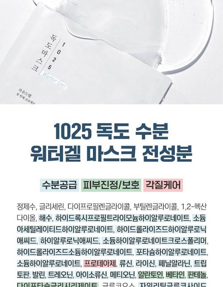 Dokdo-гийн тэнгисийн гүний ус болон бага молекултай гиалуроны хүчил агуулсан энэхүү усан гель маск нь арьсыг гүн чийгшүүлж, тайвшруулах ба чийгшлийг удаан хугацаанд хадгална. Эмзэг арьсанд ч тохиромжтой зөөлөн бүтэцтэй.