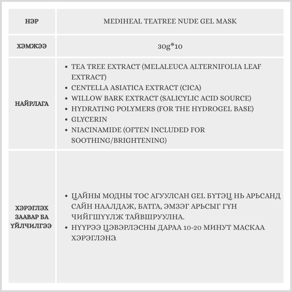 Энэхүү маск нь арьсыг тайвшруулах, цочролыг намдаах болон чийгшүүлэх үйлчилгээтэй. Ялангуяа батгашил ихтэй, мэдрэмтгий, эмзэг арьсанд тохиромжтой бөгөөд гелэн бүтэцтэй тул арьсанд сайн наалдаж, идэвхтэй найрлагуудыг арьсны гүнд шингээнэ.