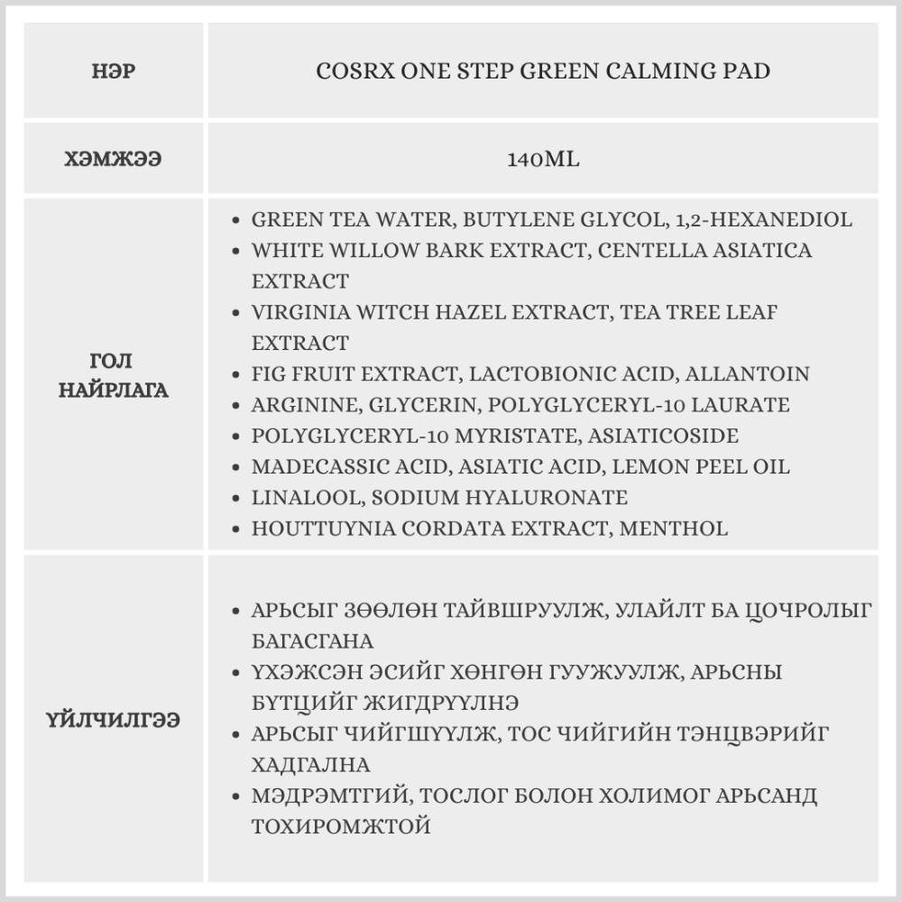 Энэхүү бүтээгдэхүүн нь арьсыг зөөлөн тайвшруулж, улайлт, цочролыг намдаана.Үхэжсэн эсийг зөөлөн гуужуулж, арьсны бүтцийг жигд болгоно.Мэдрэмтгий, тослог болон холимог арьсанд тохиромжтой.
