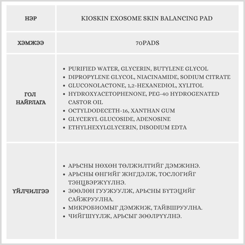 Арьсны тэнцвэрийг хадгалж, улайж цочирсон арьсыг тайвшруулна. Чийгшүүлж, хамгаалалтын давхаргыг бэхжүүлэн арьсыг толигор болгоно.