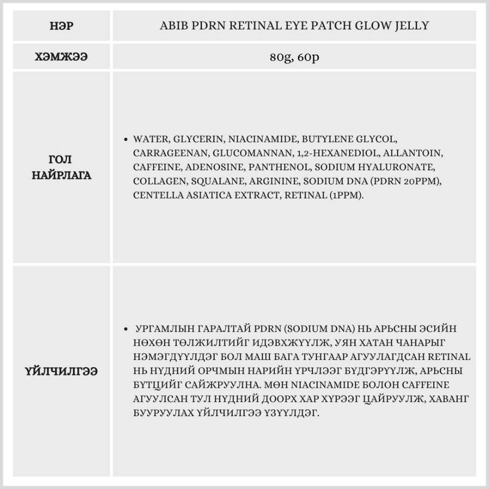 Abib PDRN Retinal Eye Patch Glow Jelly, 60p /Нүдний маск/ OY