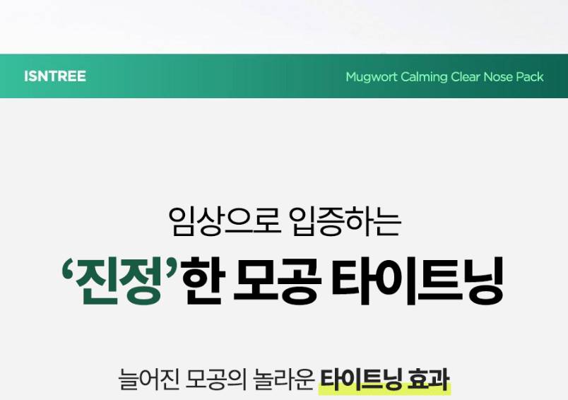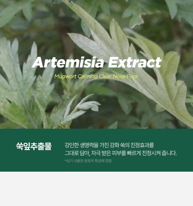Энэхүү хамрын маск нь ердийнхөөс том хэмжээтэй тул хамраас гадна хацрын хэсэгт ч давхар хэрэглэх боломжтой. Найрлагадаа Mugwort агуулсан тул хар батгыг хүчээр татаж гаргах биш, зөөллөн цэвэрлэдэг бөгөөд эмзэгшсэн арьсыг тайвшруулна.