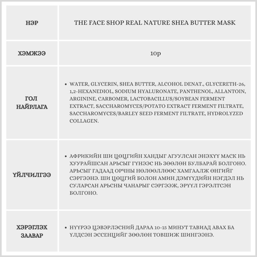 The Face Shop Real Nature Shea Butter Mask, 10p /Салфеткан маск/