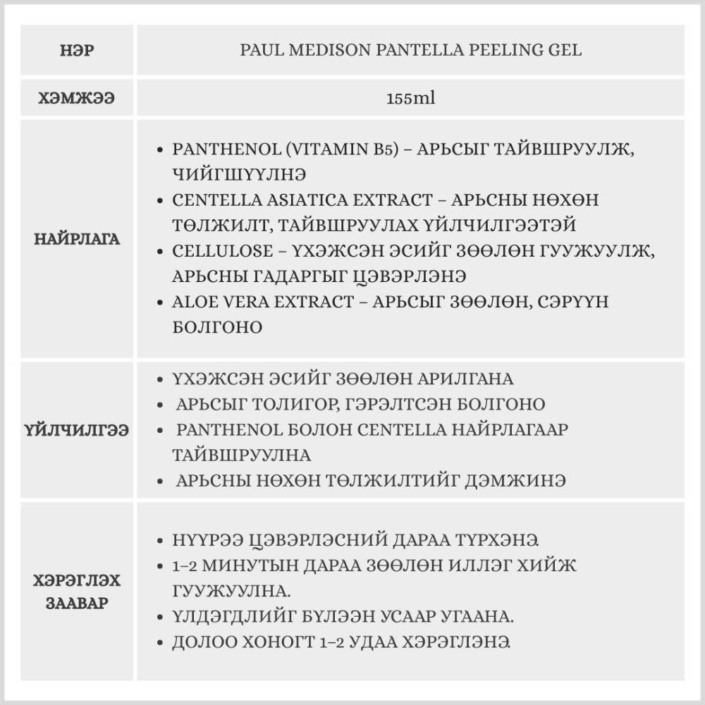 Энэхүү гуужуулагч нь Panthenol болон Centella Asiatica хосолсон найрлагатай тул арьсны үхэжсэн эсийг зөөлөн гуужуулж, арьсны бүтцийг шинэчилнэ. Арьсыг гэмтээлгүй гуужуулан арьсыг торгомсог, зөөлөн болгоно.