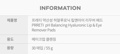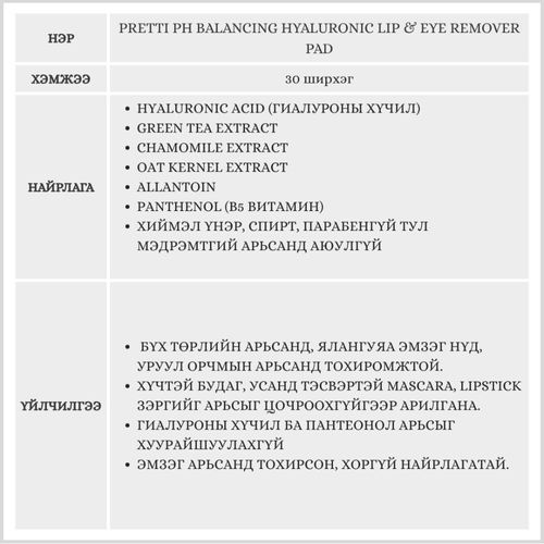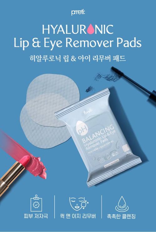 PRETTI pH Balancing Hyaluronic Lip & Eye Remover Pad, 30 ширхэг × 4уут