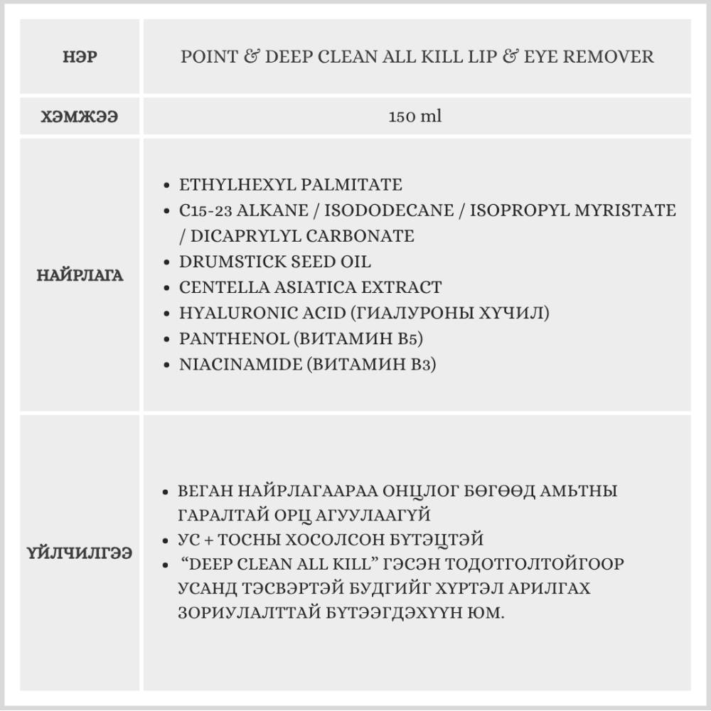 AHCPoint & Deep Clean All Kill Lip & Eye Remover, 150 мл