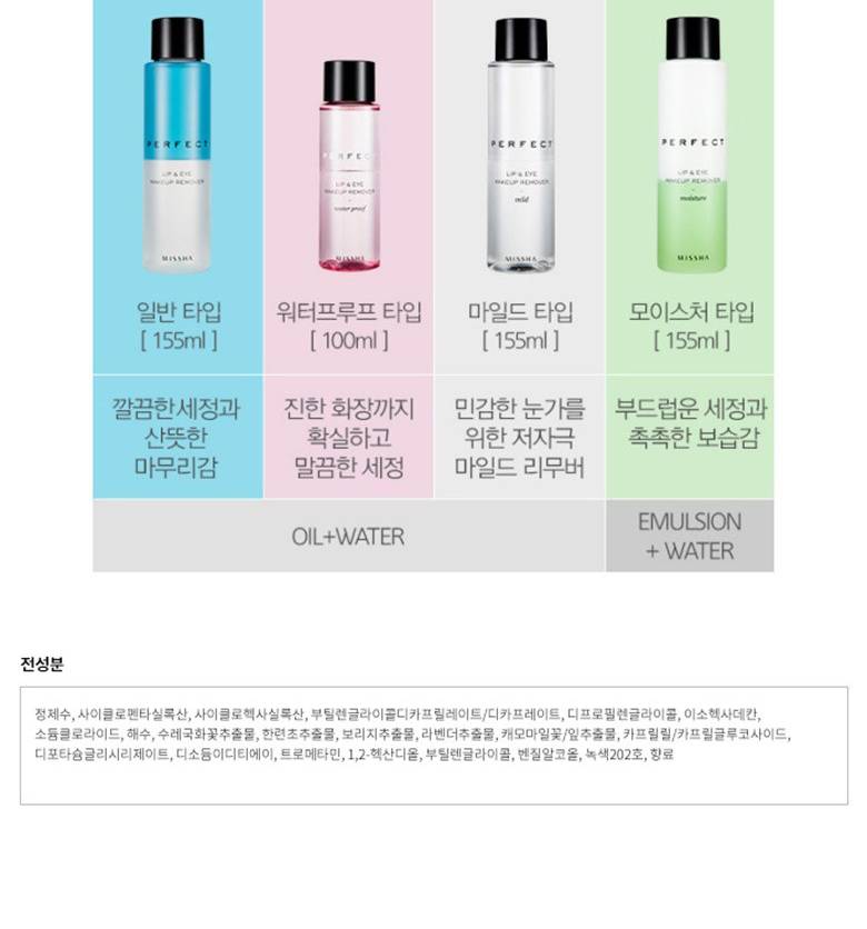 Missha Perfect Lip & Eye Makeup Remover , 155 ml/2ширхэг