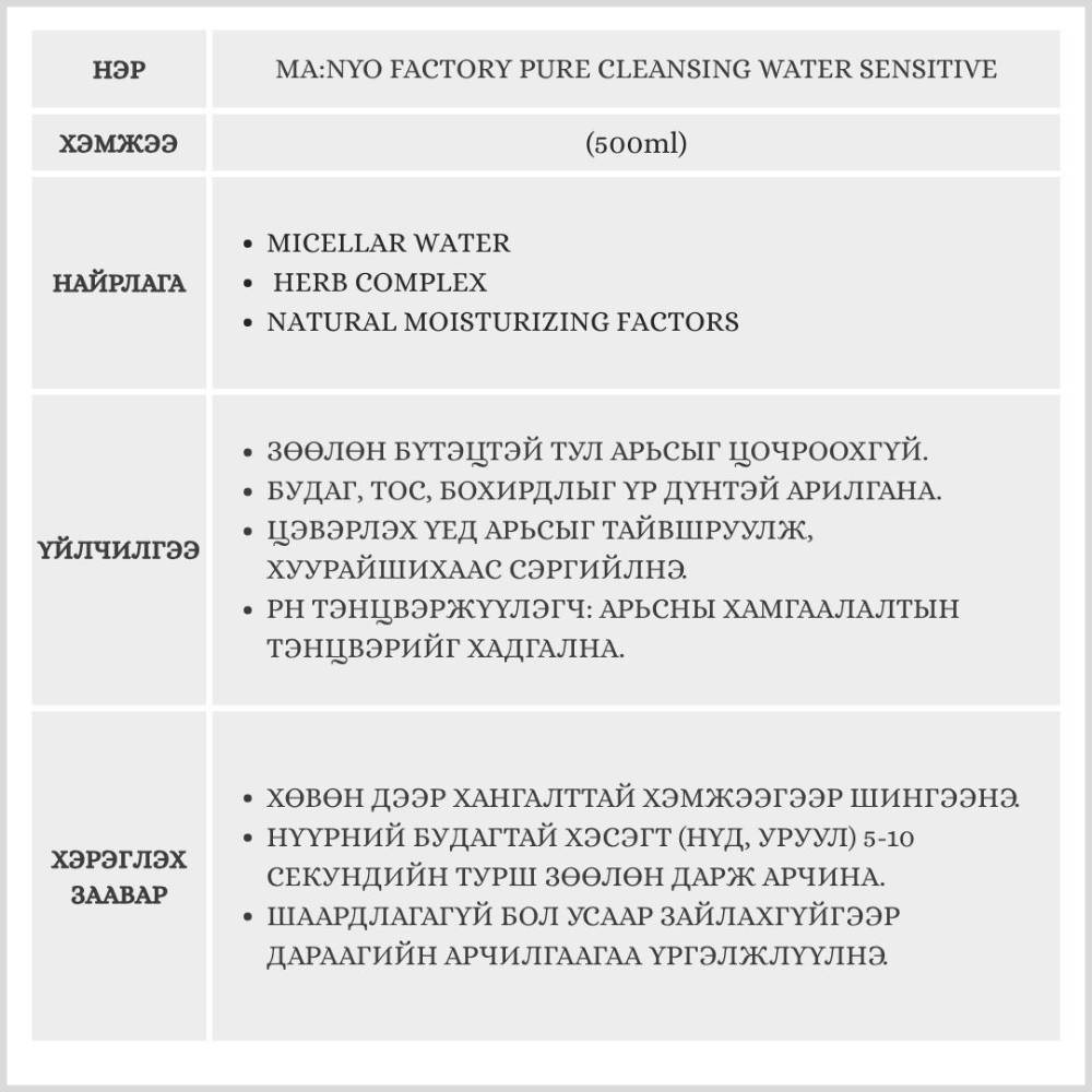 Ma:nyo Factory Pure Cleansing Water Sensitive (500ml)
