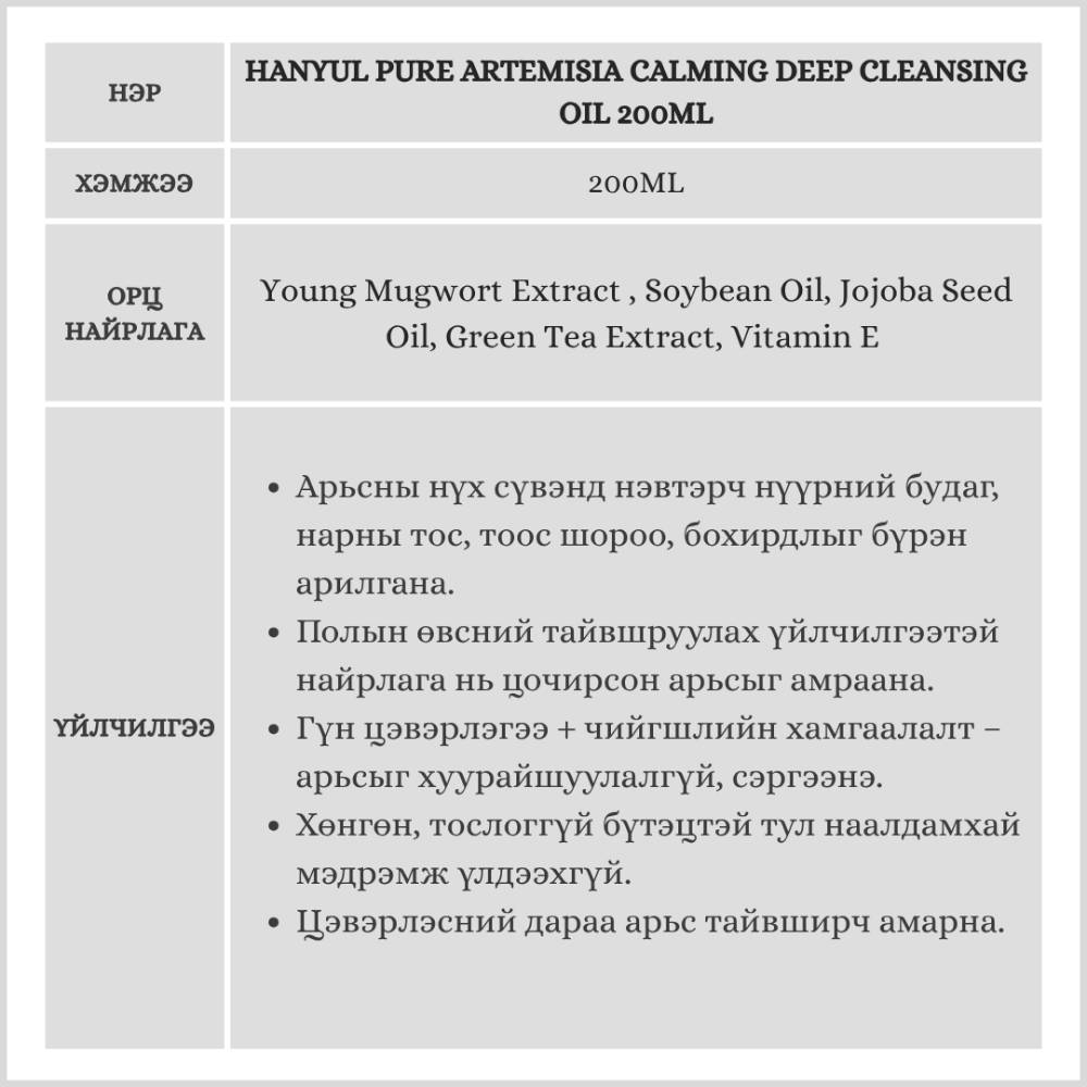 Полын өвсний хандтай — тайвшруулах үйлчилгээтэй гүн цэвэрлэгээ Арьсны нөхөн төлжилтийг дэмжиж, тайвшруулж, бохирдол болон үрэвслийг намдаана. Тослогын балансыг тэнцвэржүүлж, арьсыг уян хатан болгоно.