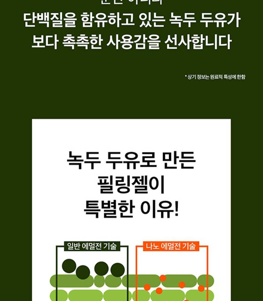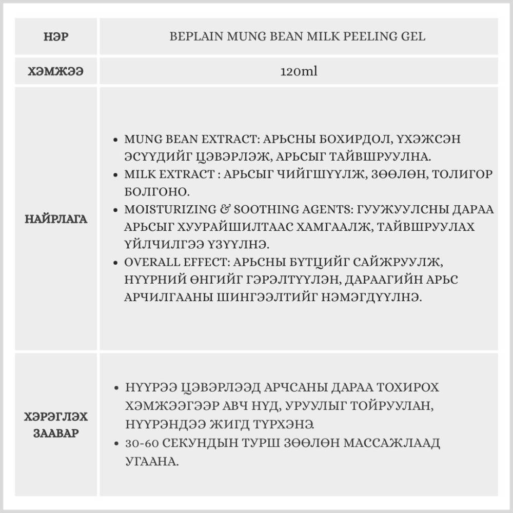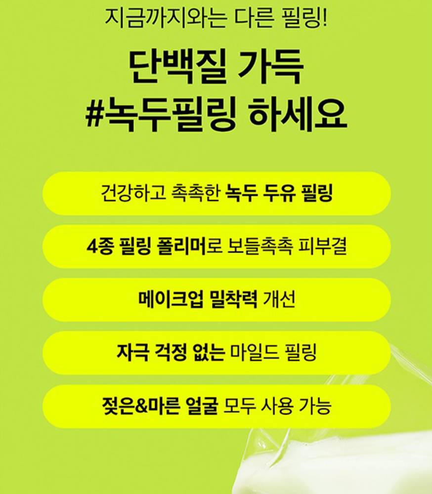 Гуужуулагч болон сүүн цэвэрлэгчийн нэг дор хослуулсан бөгөөд ногоон шошны уураг болон сүүний найрлага агуулсан. Арьсны үхэжсэн эсийг гуужуулж, зөөлөн, чийглэг болгоно. Low-irritation буюу цочрол бага өгөх тул эмзэг арьсанд ч тохиромжтой.