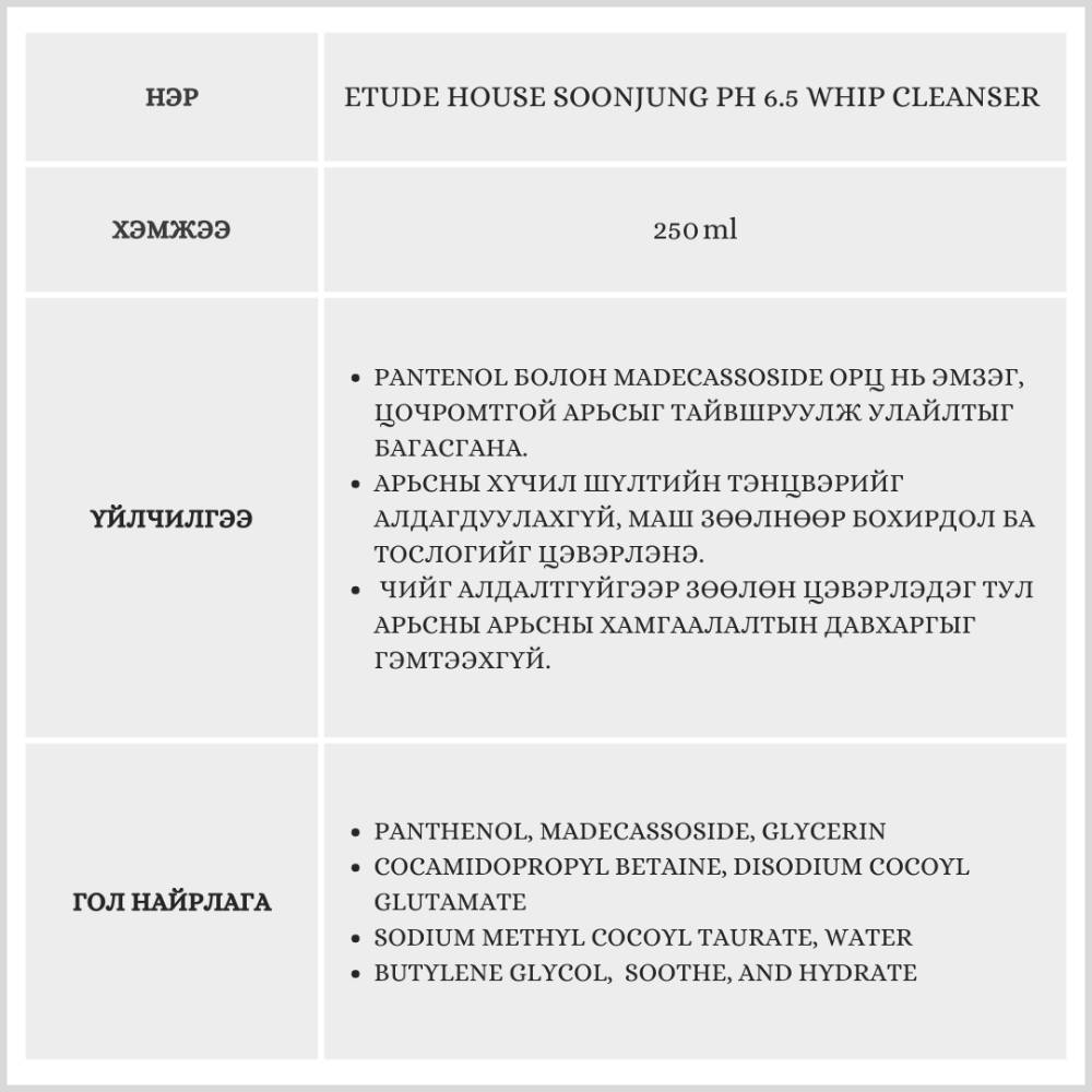 Энэхүү бүтээгдэхүүн нь эмзэг, мэдрэмтгий арьсанд зориулагдсан бөгөөд арьсыг цочроохгүй арьсны pH тэнцвэрийг хадгалж тайвшруулна. Мөн амьтны гаралтай түүхий эд ашиглаагүй, веган найрлагатай.