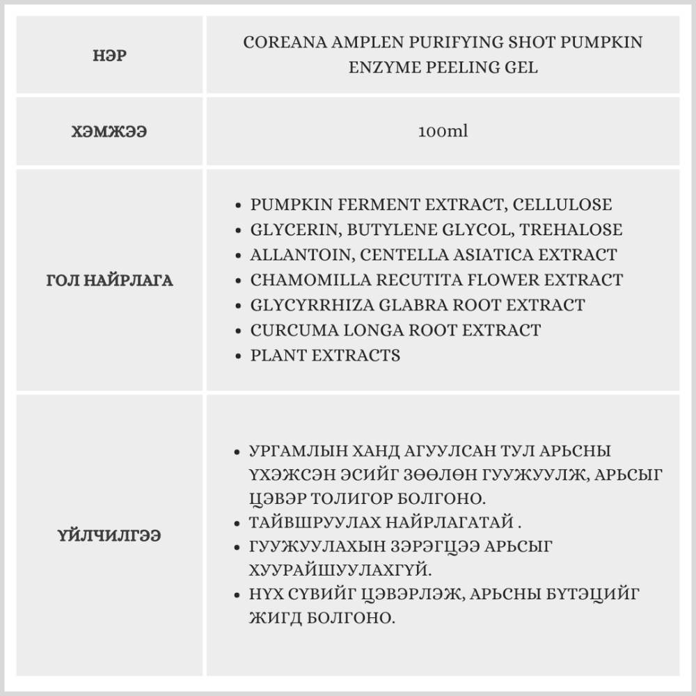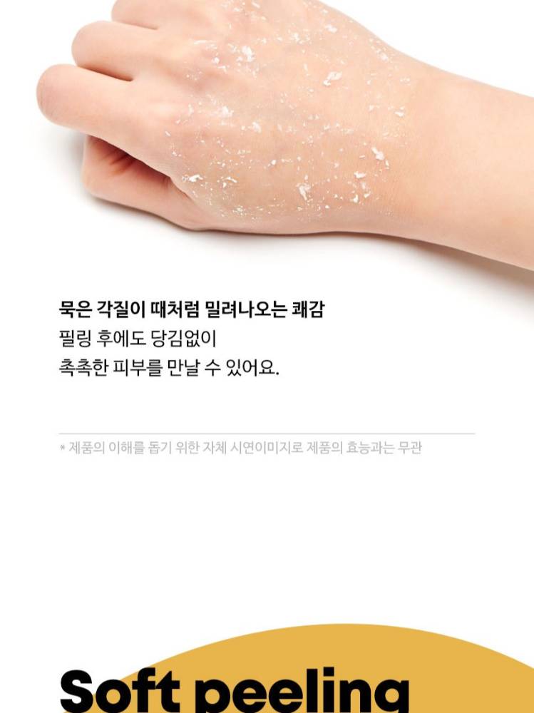 Энэхүү бүтээгдэхүүн нь үхэжсэн эсийг зөөлөн арилгана. Чийгшүүлэх найрлагатай тул арьсыг хуурайшуулахгүй толигор зөөлөн болгоно.