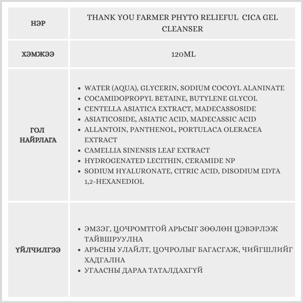 Энэхүү гель цэвэрлэгч нь эмзэг, цочромтгой арьсыг зөөлөн цэвэрлэж, улайлт болон цочролыг тайвшруулна.Арьсны хамгаалалтын давхаргыг дэмжиж, чийгшлийг хадгална.